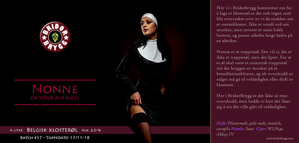 Ville brygge Nonne på nytt. Dette har kanskje vært den ølen jeg har brygget det har vært størst uenighet om. Jeg og noen andre syns den var veldig god, mens andre var relativt lunkne til den.
