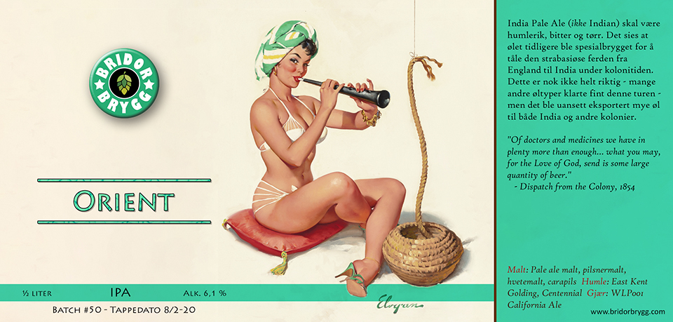 Brygget IPA denne gangen, ny versjon av Orient. Den første versjonen av denne var ikke spesielt god, og selv om versjon nummer to var bedre var det absolutt rom for forbedringer. Denne versjonen ble derfor endret til helt nye humler, så får vi se om det blir bedre.Tørrhumlet også denne gangen, noe som egentlig er et must for IPA’er.